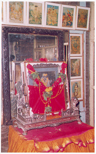 cross-legged Baba ,kept in grand attire on Silver Sinhasan(hence it